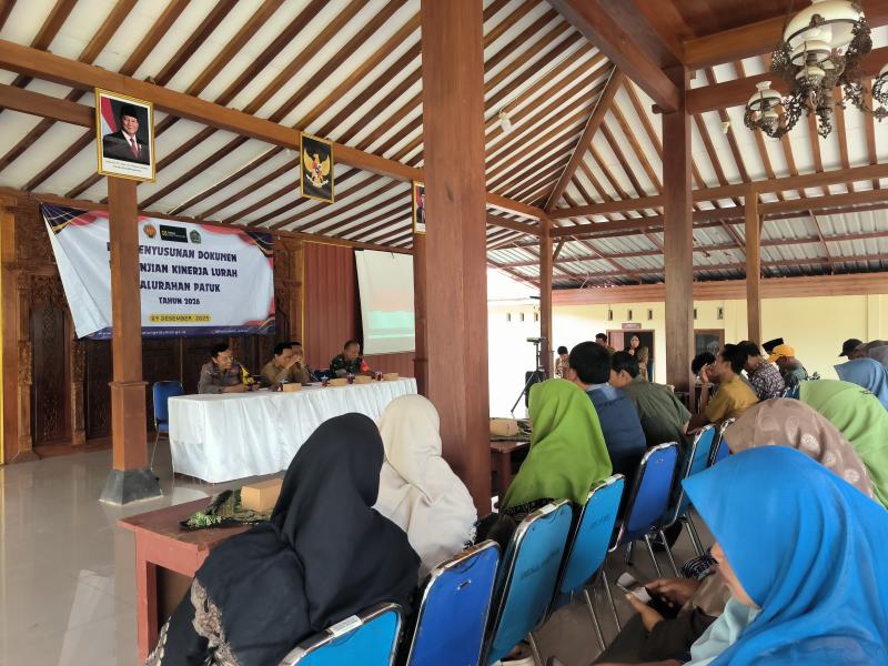 PATUK, Pemerintah Kalurahan Patuk melaksanakan kegiatan penyusunan Perjanjian Kinerja Lurah Tahun 2026, Selasa (09/12) pagi. Bertempat di Pendopo Ismoyo Balai Kalurahan Patuk, kegiatan ini dihadiri Lurah, Pamong Kalurahan, Babinsa, Babhinkamtibmas, Bamuskal, dan Lembaga Kalurahan. Penyusunan perjanjian kinerja lurah ini bertujuan untuk menetapkan target dan indikator kinerja lurah yang jelas sebagai pedoman pelaksanaan program dan kegiatan kalurahan selama satu tahun anggaran.